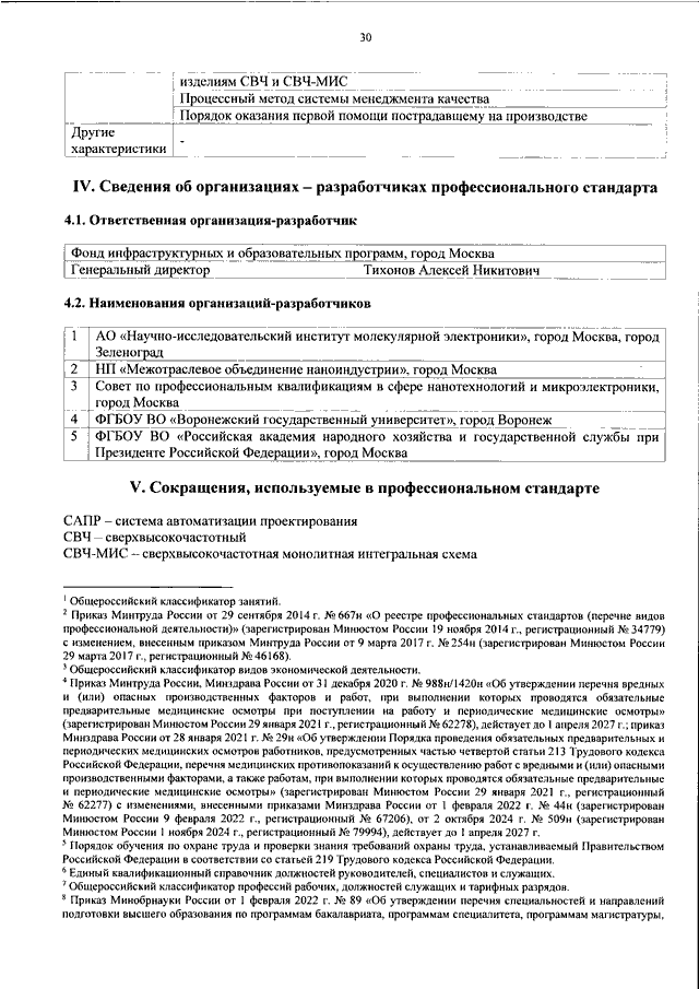 "ОБ УТВЕРЖДЕНИИ ПРОФЕССИОНАЛЬНОГО СТАНДАРТА "СПЕЦИАЛИСТ В ОБЛАСТИ НАНОГЕТЕРОСТРУКТУРНЫХ СВЕРХВЫСОКОЧАСТОТНЫХ МОНОЛИТНЫХ ИНТЕГРАЛЬНЫХ СХЕМ"