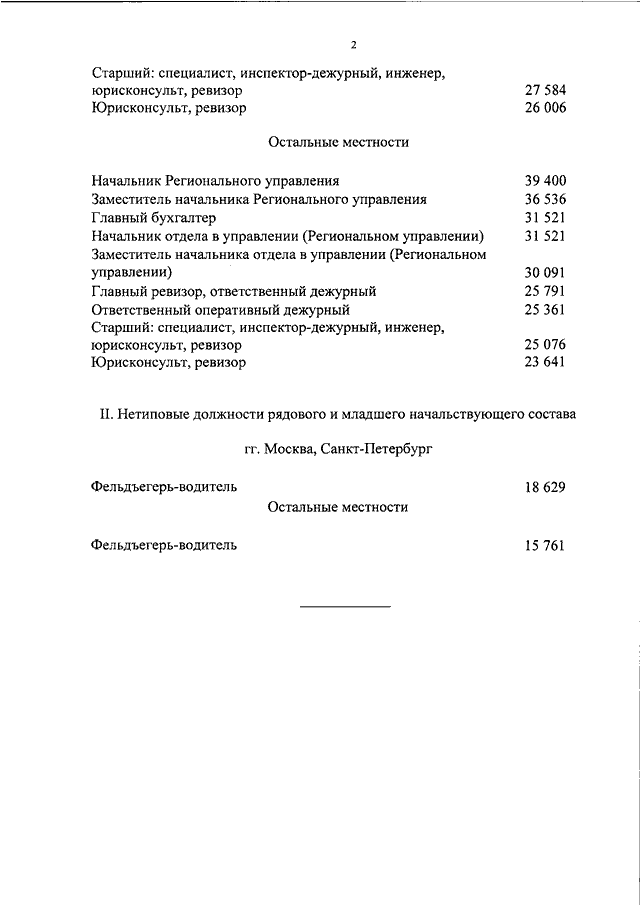 "ОБ УСТАНОВЛЕНИИ РАЗМЕРОВ МЕСЯЧНЫХ ОКЛАДОВ В СООТВЕТСТВИИ С ЗАМЕЩАЕМОЙ ДОЛЖНОСТЬЮ ПО НЕТИПОВЫМ ДОЛЖНОСТЯМ СОТРУДНИКОВ ОРГАНОВ ВНУТРЕННИХ ДЕЛ РОССИЙСКОЙ ФЕДЕРАЦИИ, ПРИКОМАНДИРОВАННЫХ В СООТВЕТСТВИИ С ЗАКОНОДАТЕЛЬСТВОМ РОССИЙСКОЙ ФЕДЕРАЦИИ К ГОСУДАРСТВЕННОЙ ФЕЛЬДЪЕГЕРСКОЙ СЛУЖБЕ РОССИЙСКОЙ ФЕДЕРАЦИИ"