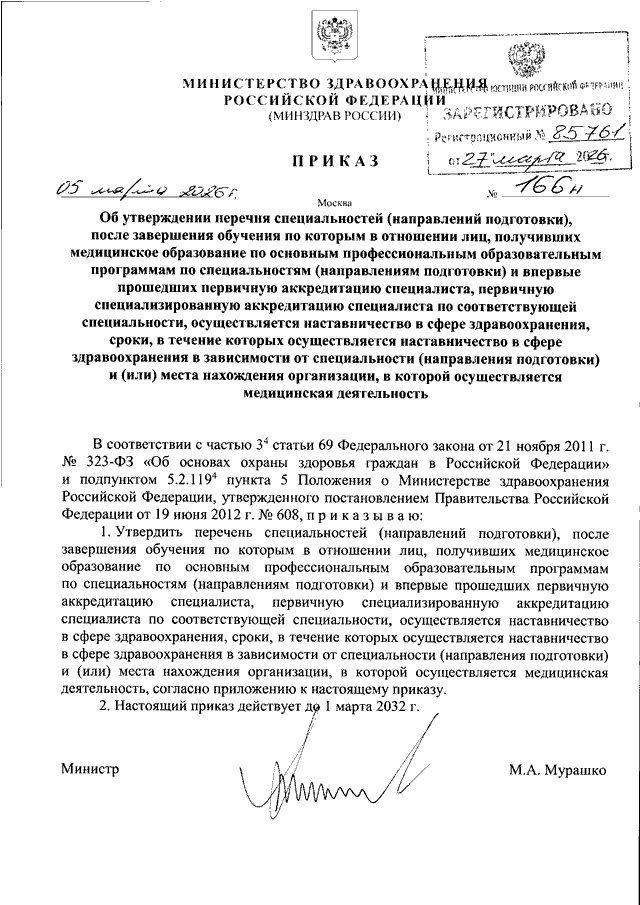 ПРИКАЗ Минздрава РФ от 05.03.2026 N 166н