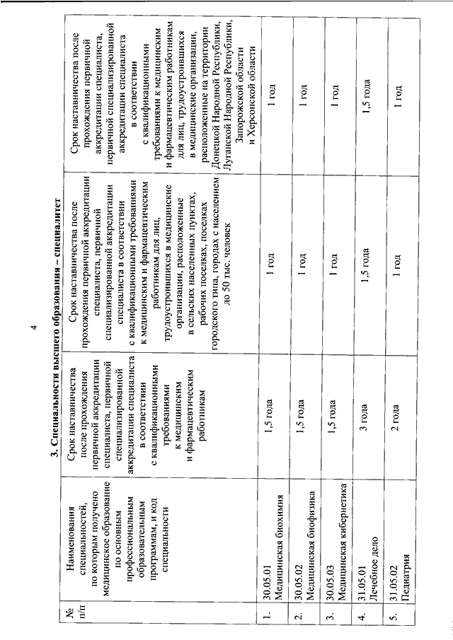 "ОБ УТВЕРЖДЕНИИ ПЕРЕЧНЯ СПЕЦИАЛЬНОСТЕЙ (НАПРАВЛЕНИЙ ПОДГОТОВКИ), ПОСЛЕ ЗАВЕРШЕНИЯ ОБУЧЕНИЯ ПО КОТОРЫМ В ОТНОШЕНИИ ЛИЦ, ПОЛУЧИВШИХ МЕДИЦИНСКОЕ ОБРАЗОВАНИЕ ПО ОСНОВНЫМ ПРОФЕССИОНАЛЬНЫМ ОБРАЗОВАТЕЛЬНЫМ ПРОГРАММАМ ПО СПЕЦИАЛЬНОСТЯМ (НАПРАВЛЕНИЯМ ПОДГОТОВКИ) И ВПЕРВЫЕ ПРОШЕДШИХ ПЕРВИЧНУЮ АККРЕДИТАЦИЮ СПЕЦИАЛИСТА, ПЕРВИЧНУЮ СПЕЦИАЛИЗИРОВАННУЮ АККРЕДИТАЦИЮ СПЕЦИАЛИСТА ПО СООТВЕТСТВУЮЩЕЙ СПЕЦИАЛЬНОСТИ, ОСУЩЕСТВЛЯЕТСЯ НАСТАВНИЧЕСТВО В СФЕРЕ ЗДРАВООХРАНЕНИЯ, СРОКИ, В ТЕЧЕНИЕ КОТОРЫХ ОСУЩЕСТВЛЯЕТСЯ НАСТАВНИЧЕСТВО В СФЕРЕ ЗДРАВООХРАНЕНИЯ В ЗАВИСИМОСТИ ОТ СПЕЦИАЛЬНОСТИ (НАПРАВЛЕНИЯ ПОДГОТОВКИ) И (ИЛИ) МЕСТА НАХОЖДЕНИЯ ОРГАНИЗАЦИИ, В КОТОРОЙ ОСУЩЕСТВЛЯЕТСЯ МЕДИЦИНСКАЯ ДЕЯТЕЛЬНОСТЬ"