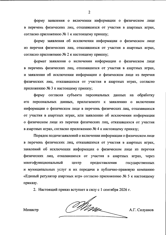 "ОБ УТВЕРЖДЕНИИ ФОРМЫ ЗАЯВЛЕНИЯ О ВКЛЮЧЕНИИ ИНФОРМАЦИИ О ФИЗИЧЕСКОМ ЛИЦЕ В ПЕРЕЧЕНЬ ФИЗИЧЕСКИХ ЛИЦ, ОТКАЗАВШИХСЯ ОТ УЧАСТИЯ В АЗАРТНЫХ ИГРАХ, ФОРМЫ ЗАЯВЛЕНИЯ ОБ ИСКЛЮЧЕНИИ ИНФОРМАЦИИ О ФИЗИЧЕСКОМ ЛИЦЕ ИЗ ПЕРЕЧНЯ ФИЗИЧЕСКИХ ЛИЦ, ОТКАЗАВШИХСЯ ОТ УЧАСТИЯ В АЗАРТНЫХ ИГРАХ, ИХ ФОРМАТА, ФОРМЫ СОГЛАСИЯ СУБЪЕКТА ПЕРСОНАЛЬНЫХ ДАННЫХ НА ОБРАБОТКУ ЕГО ПЕРСОНАЛЬНЫХ ДАННЫХ, ПРИЛАГАЕМОГО К ТАКИМ ЗАЯВЛЕНИЯМ, А ТАКЖЕ ПОРЯДКА ПОДАЧИ ЗАЯВЛЕНИЙ О ВКЛЮЧЕНИИ ИНФОРМАЦИИ О ФИЗИЧЕСКОМ ЛИЦЕ В ПЕРЕЧЕНЬ ФИЗИЧЕСКИХ ЛИЦ, ОТКАЗАВШИХСЯ ОТ УЧАСТИЯ В АЗАРТНЫХ ИГРАХ, ЗАЯВЛЕНИЙ ОБ ИСКЛЮЧЕНИИ ИНФОРМАЦИИ О ФИЗИЧЕСКОМ ЛИЦЕ ИЗ ПЕРЕЧНЯ ФИЗИЧЕСКИХ ЛИЦ, ОТКАЗАВШИХСЯ ОТ УЧАСТИЯ В АЗАРТНЫХ ИГРАХ, ЧЕРЕЗ МНОГОФУНКЦИОНАЛЬНЫЙ ЦЕНТР ПРЕДОСТАВЛЕНИЯ ГОСУДАРСТВЕННЫХ И МУНИЦИПАЛЬНЫХ УСЛУГ И ИХ ПЕРЕДАЧИ В ПУБЛИЧНО - ПРАВОВУЮ КОМПАНИЮ "ЕДИНЫЙ РЕГУЛЯТОР АЗАРТНЫХ ИГР"