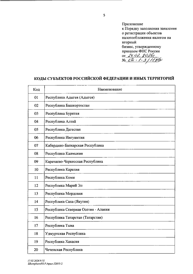 ПРИКАЗ ФНС РФ от 24.02.2026 N ЕД-1-3/117@