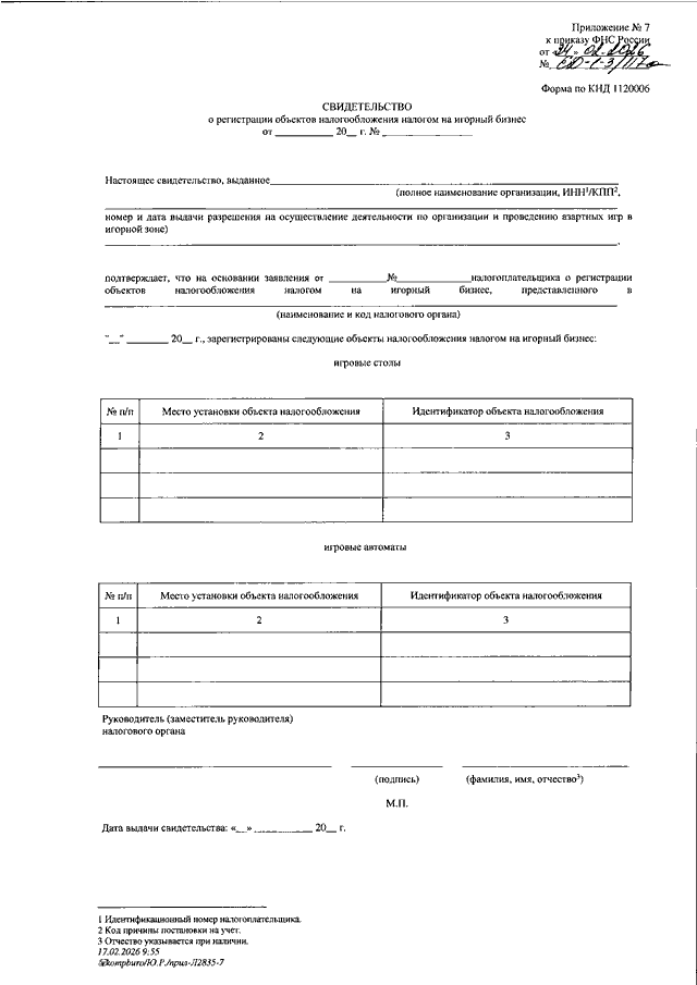 "ОБ УТВЕРЖДЕНИИ ФОРМ ДОКУМЕНТОВ, ИСПОЛЬЗУЕМЫХ ПРИ РЕГИСТРАЦИИ ОБЪЕКТОВ НАЛОГООБЛОЖЕНИЯ НАЛОГОМ НА ИГОРНЫЙ БИЗНЕС, ПОРЯДКОВ ИХ ЗАПОЛНЕНИЯ И ФОРМАТОВ ИХ ПРЕДСТАВЛЕНИЯ В ЭЛЕКТРОННОЙ ФОРМЕ"