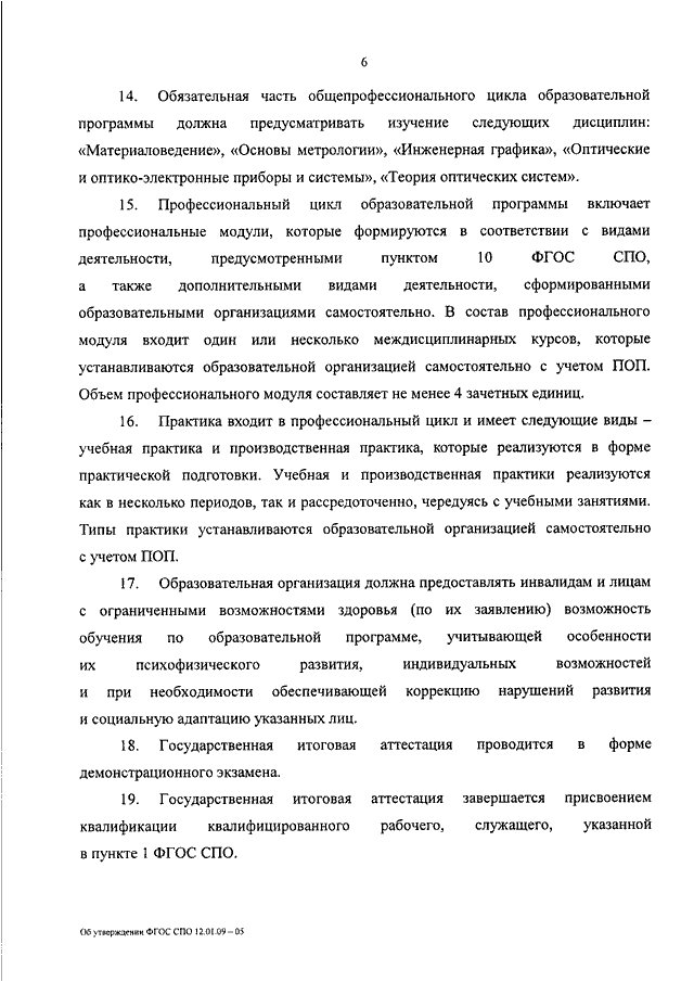 "ОБ УТВЕРЖДЕНИИ ФЕДЕРАЛЬНОГО ГОСУДАРСТВЕННОГО ОБРАЗОВАТЕЛЬНОГО СТАНДАРТА СРЕДНЕГО ПРОФЕССИОНАЛЬНОГО ОБРАЗОВАНИЯ ПО ПРОФЕССИИ 12.01.09 МАСТЕР ПО ИЗГОТОВЛЕНИЮ И СБОРКЕ ДЕТАЛЕЙ И УЗЛОВ ОПТИЧЕСКИХ И ОПТИКО - ЭЛЕКТРОННЫХ ПРИБОРОВ И СИСТЕМ"