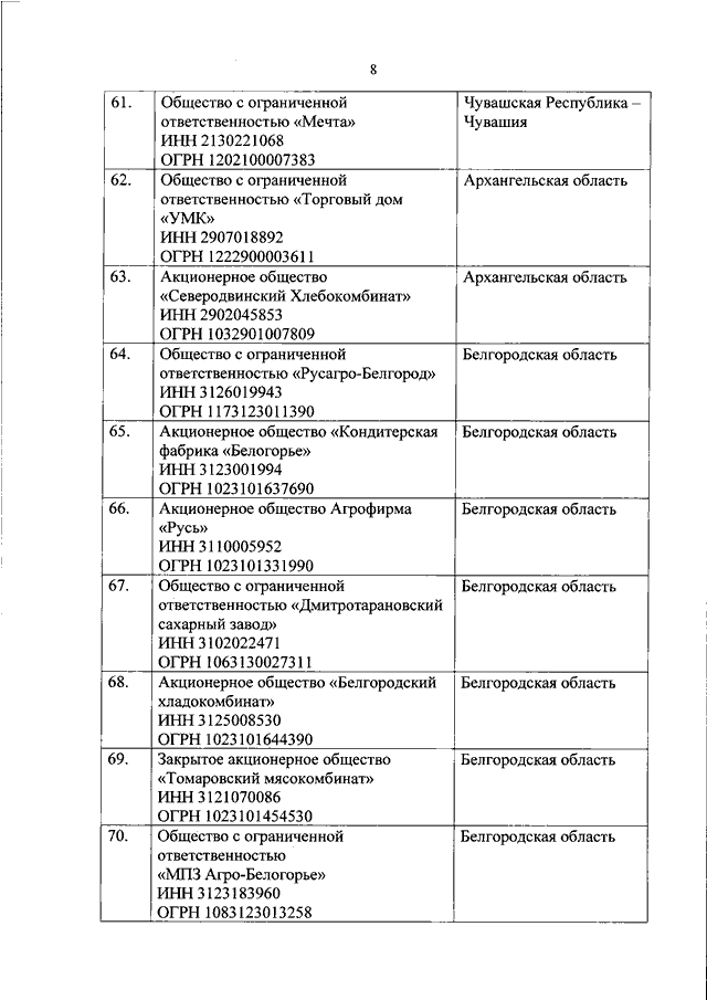 "ОБ УТВЕРЖДЕНИИ ПЕРЕЧНЯ ОРГАНИЗАЦИЙ, ОСУЩЕСТВЛЯЮЩИХ ПЕРВИЧНУЮ И (ИЛИ) ПОСЛЕДУЮЩУЮ (ПРОМЫШЛЕННУЮ) ПЕРЕРАБОТКУ СЕЛЬСКОХОЗЯЙСТВЕННОЙ ПРОДУКЦИИ И (ИЛИ) ПРОИЗВОДСТВО ИЗ ПРОДУКЦИИ (СЫРЬЯ), НЕ ОТНОСЯЩЕЙСЯ К СЕЛЬСКОХОЗЯЙСТВЕННОЙ, ЛЕКАРСТВЕННЫХ СРЕДСТВ ДЛЯ ВЕТЕРИНАРНОГО ПРИМЕНЕНИЯ, КОРМОВЫХ И ПИЩЕВЫХ ДОБАВОК, ФЕРМЕНТНЫХ ПРЕПАРАТОВ"