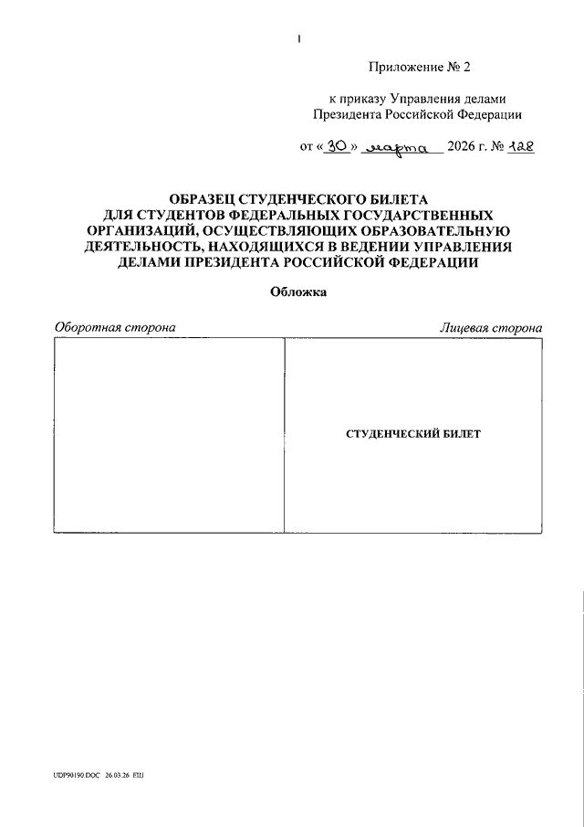 ПРИКАЗ Управления делами Президента РФ от 30.03.2026 N 128