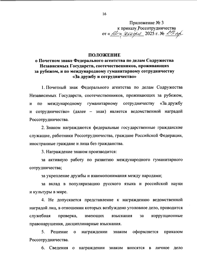 "О ВЕДОМСТВЕННЫХ НАГРАДАХ ФЕДЕРАЛЬНОГО АГЕНТСТВА ПО ДЕЛАМ СОДРУЖЕСТВА НЕЗАВИСИМЫХ ГОСУДАРСТВ, СООТЕЧЕСТВЕННИКОВ, ПРОЖИВАЮЩИХ ЗА РУБЕЖОМ, И ПО МЕЖДУНАРОДНОМУ ГУМАНИТАРНОМУ СОТРУДНИЧЕСТВУ"
