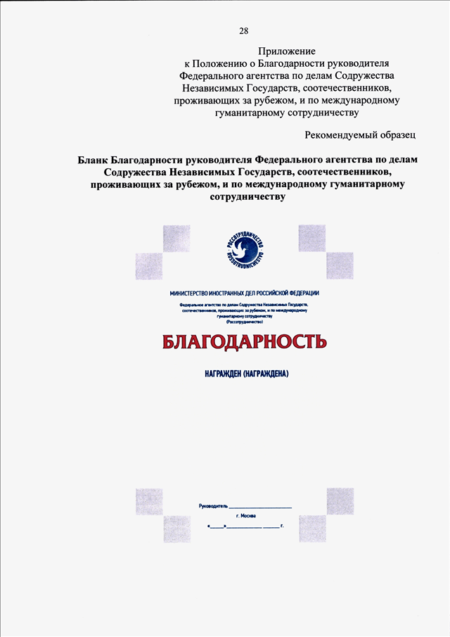 "О ВЕДОМСТВЕННЫХ НАГРАДАХ ФЕДЕРАЛЬНОГО АГЕНТСТВА ПО ДЕЛАМ СОДРУЖЕСТВА НЕЗАВИСИМЫХ ГОСУДАРСТВ, СООТЕЧЕСТВЕННИКОВ, ПРОЖИВАЮЩИХ ЗА РУБЕЖОМ, И ПО МЕЖДУНАРОДНОМУ ГУМАНИТАРНОМУ СОТРУДНИЧЕСТВУ"