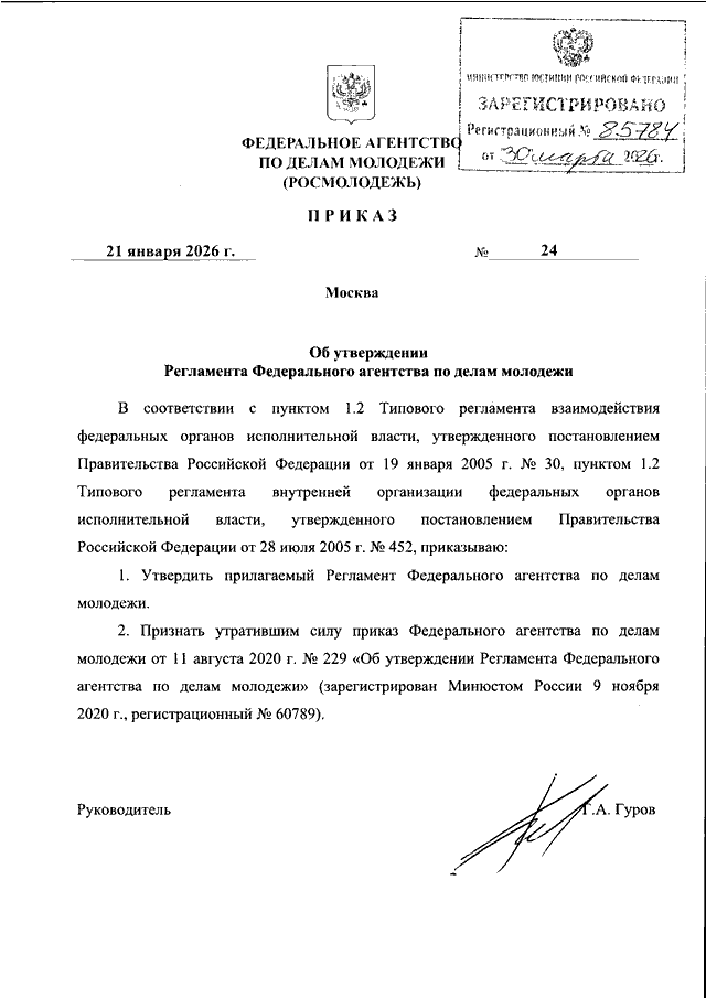 ПРИКАЗ Росмолодежи от 21.01.2026 N 24