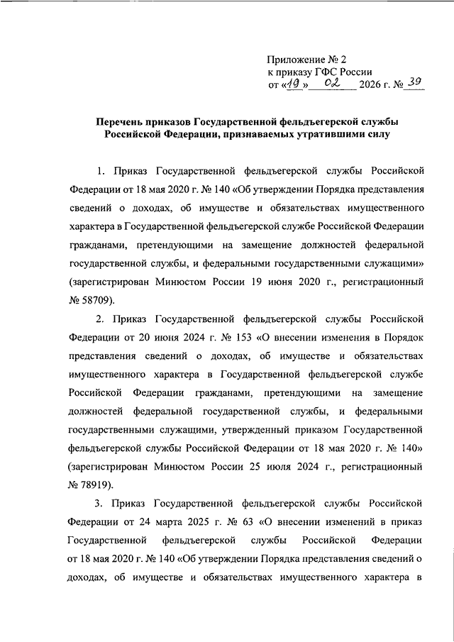 ПРИКАЗ ГФС РФ от 19.02.2026 N 39