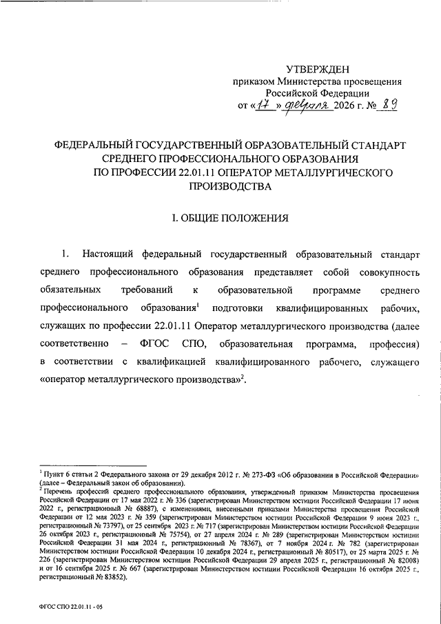ПРИКАЗ Минпросвещения России от 17.02.2026 N 89