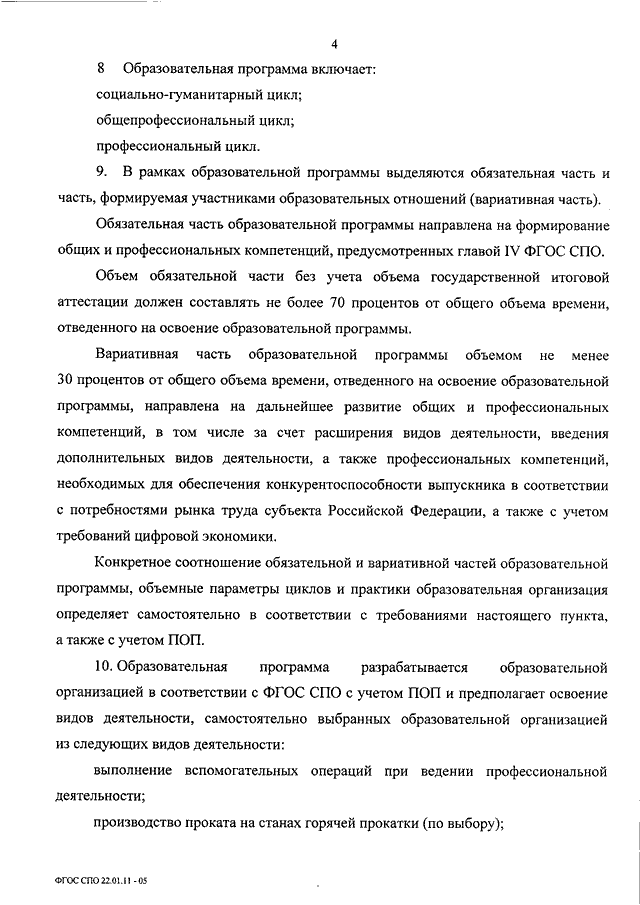 "ОБ УТВЕРЖДЕНИИ ФЕДЕРАЛЬНОГО ГОСУДАРСТВЕННОГО ОБРАЗОВАТЕЛЬНОГО СТАНДАРТА СРЕДНЕГО ПРОФЕССИОНАЛЬНОГО ОБРАЗОВАНИЯ ПО ПРОФЕССИИ 22.01.11 ОПЕРАТОР МЕТАЛЛУРГИЧЕСКОГО ПРОИЗВОДСТВА"