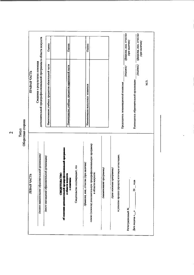 "ОБ УСТАНОВЛЕНИИ ОБРАЗЦОВ СВИДЕТЕЛЬСТВ ОБ ОСВОЕНИИ ДОПОЛНИТЕЛЬНЫХ ПРЕДПРОФЕССИОНАЛЬНЫХ ПРОГРАММ В ОБЛАСТИ ИСКУССТВ"