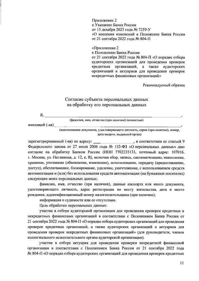 УКАЗАНИЕ ЦБ РФ от 15.12.2025 N 7259-У