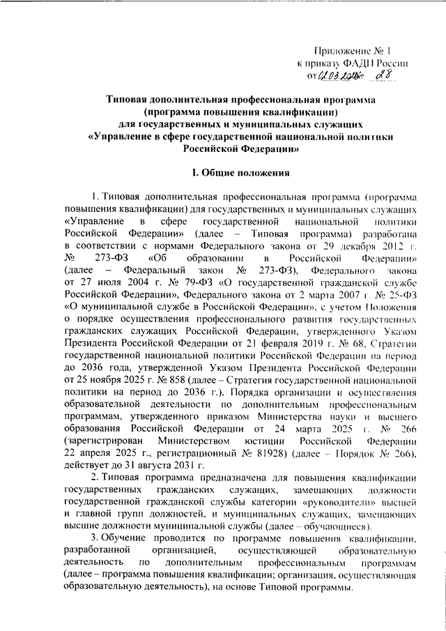 "ОБ УТВЕРЖДЕНИИ ТИПОВЫХ ДОПОЛНИТЕЛЬНЫХ ПРОФЕССИОНАЛЬНЫХ ПРОГРАММ В ОБЛАСТИ ГОСУДАРСТВЕННОЙ НАЦИОНАЛЬНОЙ ПОЛИТИКИ РОССИЙСКОЙ ФЕДЕРАЦИИ (ДЛЯ ГОСУДАРСТВЕННЫХ И МУНИЦИПАЛЬНЫХ СЛУЖАЩИХ)"