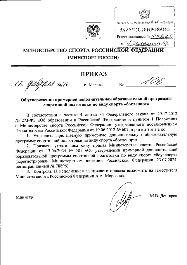 ПРИКАЗ Минспорта РФ от 17.02.2026 N 106