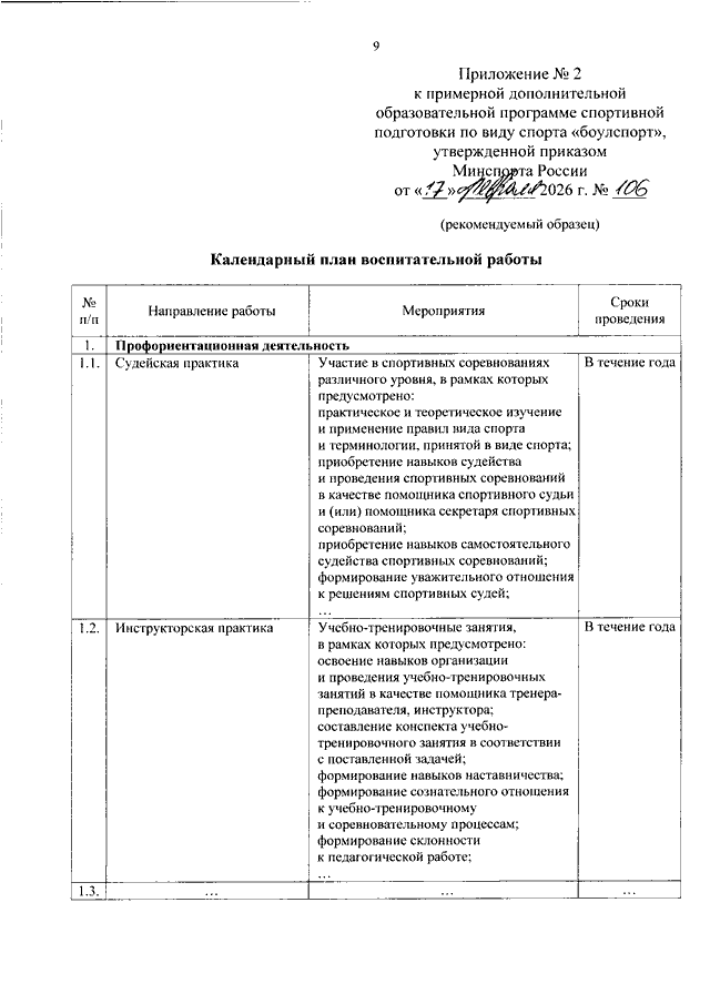 ПРИКАЗ Минспорта РФ от 17.02.2026 N 106