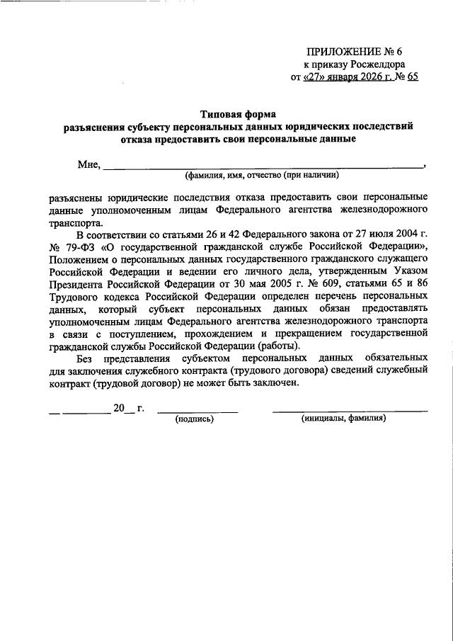 ПРИКАЗ Росжелдора от 27.01.2026 N 65