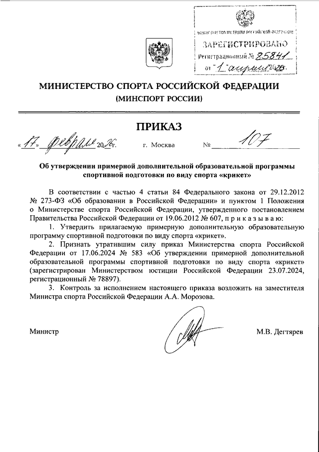 ПРИКАЗ Минспорта РФ от 17.02.2026 N 107