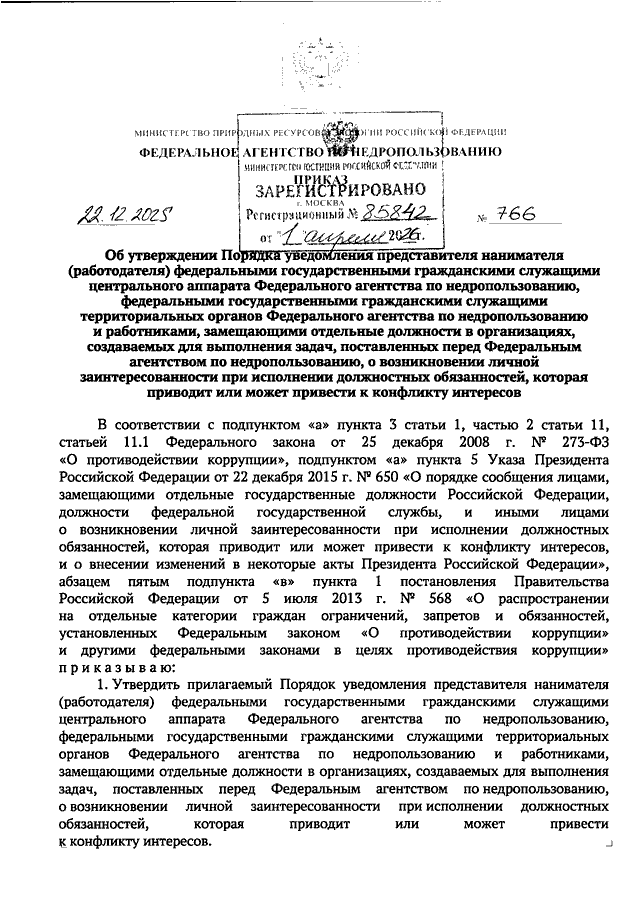 ПРИКАЗ Роснедр от 22.12.2025 N 766