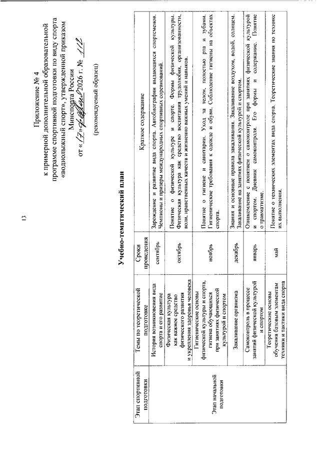 "ОБ УТВЕРЖДЕНИИ ПРИМЕРНОЙ ДОПОЛНИТЕЛЬНОЙ ОБРАЗОВАТЕЛЬНОЙ ПРОГРАММЫ СПОРТИВНОЙ ПОДГОТОВКИ ПО ВИДУ СПОРТА "ВОДНОЛЫЖНЫЙ СПОРТ"