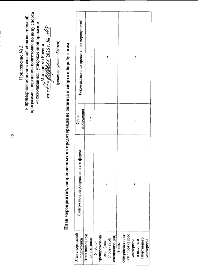 "ОБ УТВЕРЖДЕНИИ ПРИМЕРНОЙ ДОПОЛНИТЕЛЬНОЙ ОБРАЗОВАТЕЛЬНОЙ ПРОГРАММЫ СПОРТИВНОЙ ПОДГОТОВКИ ПО ВИДУ СПОРТА "СКАЛОЛАЗАНИЕ"