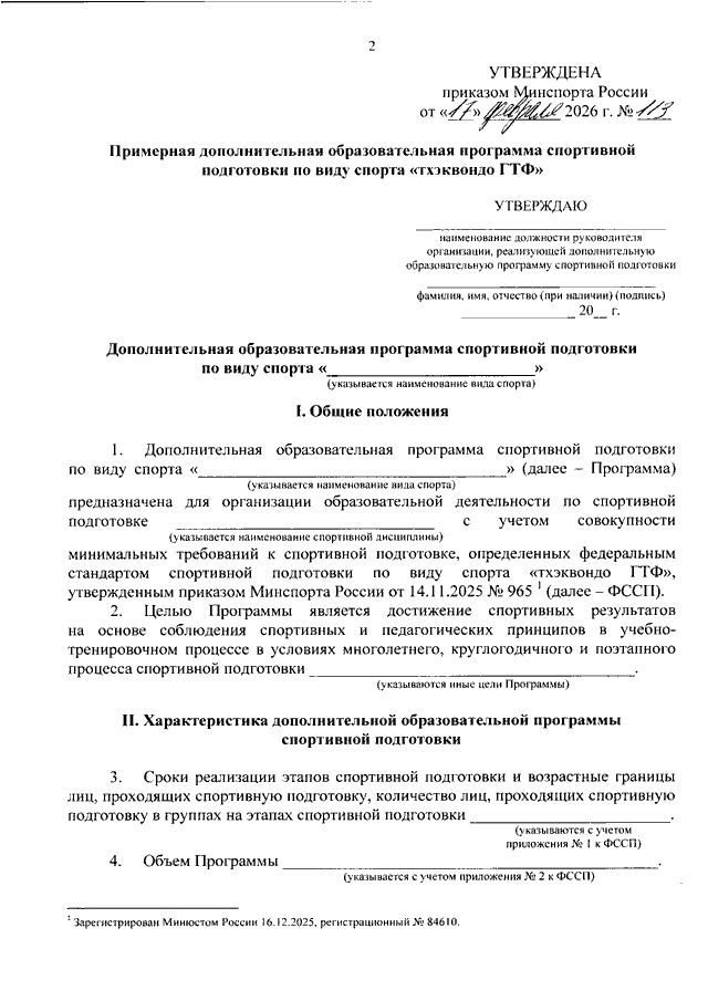 ПРИКАЗ Минспорта РФ от 17.02.2026 N 113