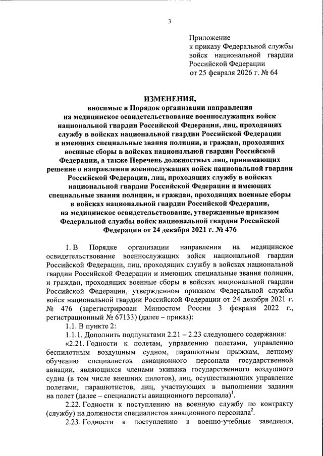 ПРИКАЗ Росгвардии от 25.02.2026 N 64