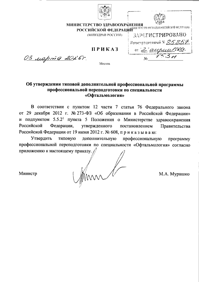 ПРИКАЗ Минздрава РФ от 03.03.2026 N 153н