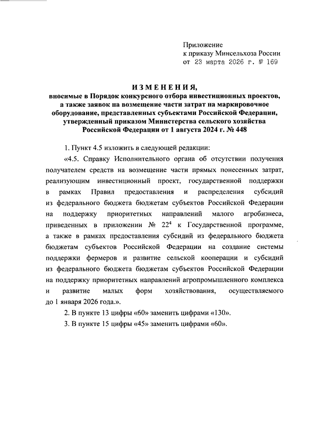 ПРИКАЗ Минсельхоза РФ от 23.03.2026 N 169