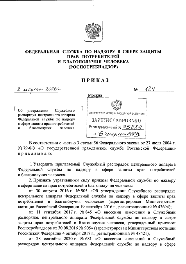 ПРИКАЗ Роспотребнадзора от 02.03.2026 N 124