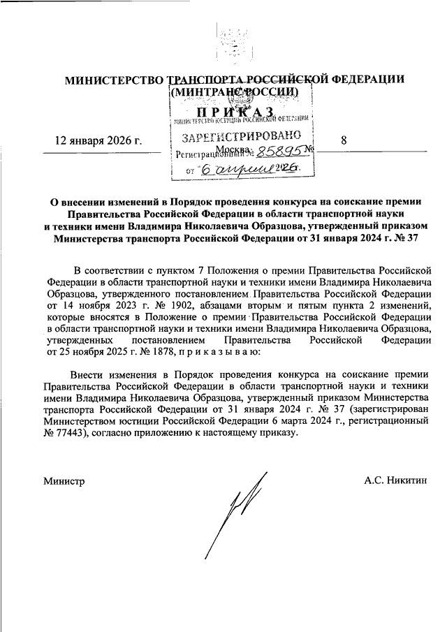 ПРИКАЗ Минтранса РФ от 12.01.2026 N 8