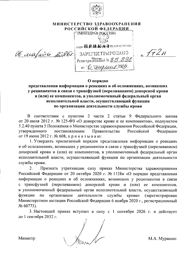 ПРИКАЗ Минздрава РФ от 06.03.2026 N 172н