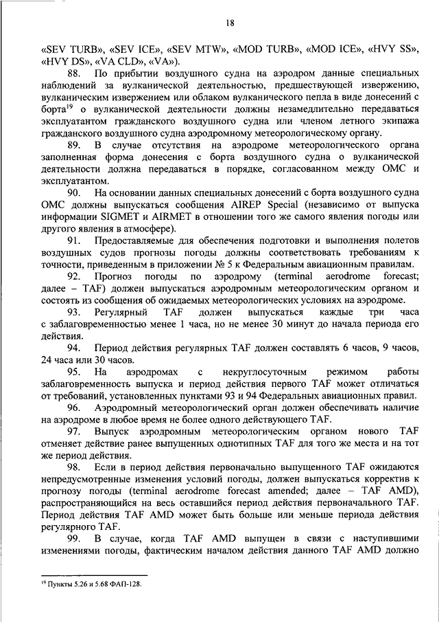"ОБ УТВЕРЖДЕНИИ ФЕДЕРАЛЬНЫХ АВИАЦИОННЫХ ПРАВИЛ "ПРАВИЛА ПРЕДОСТАВЛЕНИЯ МЕТЕОРОЛОГИЧЕСКОЙ ИНФОРМАЦИИ ДЛЯ ОБЕСПЕЧЕНИЯ ПОЛЕТОВ ВОЗДУШНЫХ СУДОВ"