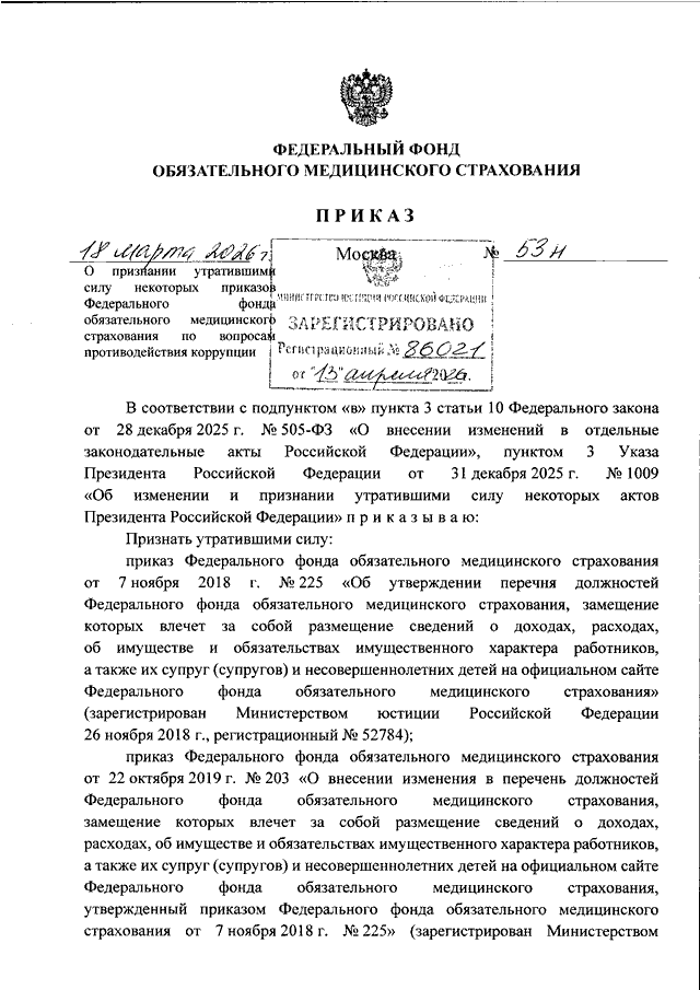 ПРИКАЗ ФФОМС от 18.03.2026 N 53н