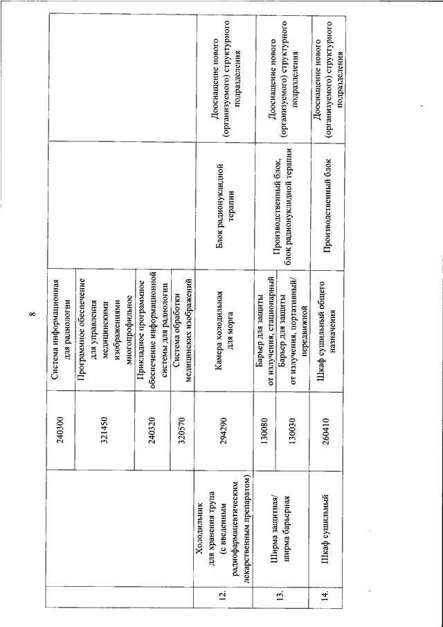 "ОБ УТВЕРЖДЕНИИ ПЕРЕЧНЯ МЕДИЦИНСКИХ ИЗДЕЛИЙ И ИНОГО ОБОРУДОВАНИЯ ДЛЯ МОДЕРНИЗАЦИИ МЕДИЦИНСКИХ ИЗДЕЛИЙ И ИНОГО ОБОРУДОВАНИЯ СТРУКТУРНЫХ ПОДРАЗДЕЛЕНИЙ МЕДИЦИНСКИХ ОРГАНИЗАЦИЙ, ПОДВЕДОМСТВЕННЫХ ИСПОЛНИТЕЛЬНЫМ ОРГАНАМ СУБЪЕКТОВ РОССИЙСКОЙ ФЕДЕРАЦИИ, ОКАЗЫВАЮЩИХ МЕДИЦИНСКУЮ ПОМОЩЬ С ПРИМЕНЕНИЕМ РАДИОЛОГИЧЕСКИХ МЕТОДОВ (ДИАГНОСТИКИ И (ИЛИ) ТЕРАПИИ), ДООСНАЩЕНИЯ ИЛИ ПЕРЕОСНАЩЕНИЯ МЕДИЦИНСКИМИ ИЗДЕЛИЯМИ И ИНЫМ ОБОРУДОВАНИЕМ СУЩЕСТВУЮЩИХ И (ИЛИ) НОВЫХ (ОРГАНИЗУЕМЫХ) СТРУКТУРНЫХ ПОДРАЗДЕЛЕНИЙ МЕДИЦИНСКИХ ОРГАНИЗАЦИЙ, ПОДВЕДОМСТВЕННЫХ ИСПОЛНИТЕЛЬНЫМ ОРГАНАМ СУБЪЕКТОВ РОССИЙСКОЙ ФЕДЕРАЦИИ, ОКАЗЫВАЮЩИХ МЕДИЦИНСКУЮ ПОМОЩЬ С ПРИМЕНЕНИЕМ РАДИОЛОГИЧЕСКИХ МЕТОДОВ (ДИАГНОСТИКИ И (ИЛИ) ТЕРАПИИ)"
