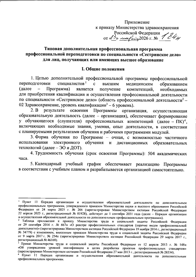 ПРИКАЗ Минздрава РФ от 13.03.2026 N 184н