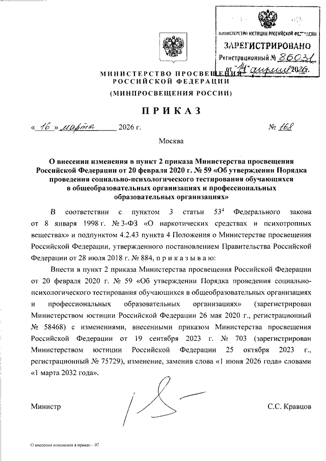 ПРИКАЗ Минпросвещения России от 16.03.2026 N 168