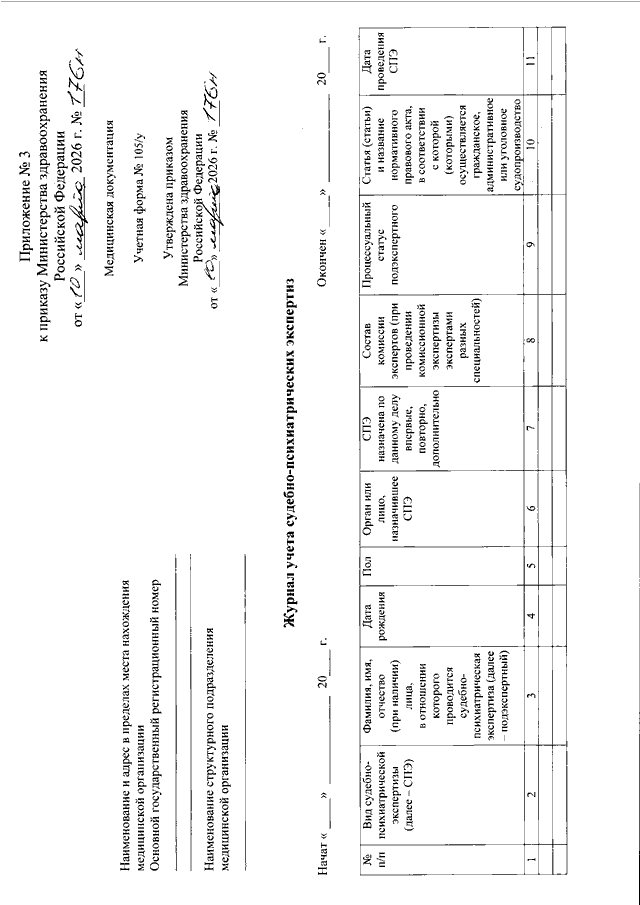 "ОБ УТВЕРЖДЕНИИ УНИФИЦИРОВАННЫХ ФОРМ МЕДИЦИНСКОЙ ДОКУМЕНТАЦИИ, ИСПОЛЬЗУЕМЫХ ПРИ ПРОВЕДЕНИИ СУДЕБНО - ПСИХИАТРИЧЕСКОЙ ЭКСПЕРТИЗЫ, И ПОРЯДКОВ ИХ ВЕДЕНИЯ"