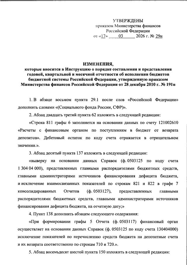 ПРИКАЗ Минфина РФ от 17.03.2026 N 29н