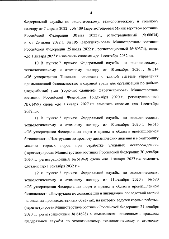 "О ВНЕСЕНИИ ИЗМЕНЕНИЙ В НЕКОТОРЫЕ ПРИКАЗЫ ФЕДЕРАЛЬНОЙ СЛУЖБЫ ПО ЭКОЛОГИЧЕСКОМУ, ТЕХНОЛОГИЧЕСКОМУ И АТОМНОМУ НАДЗОРУ ПО ВОПРОСАМ ПРОМЫШЛЕННОЙ БЕЗОПАСНОСТИ НА ОПАСНЫХ ПРОИЗВОДСТВЕННЫХ ОБЪЕКТАХ УГОЛЬНОЙ ПРОМЫШЛЕННОСТИ"