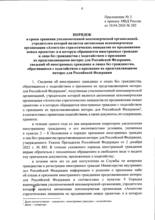 ПРИКАЗ МВД РФ от 10.04.2026 N 202