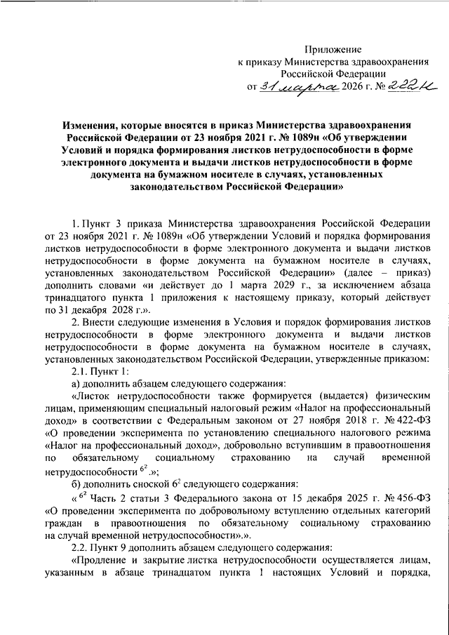 ПРИКАЗ Минздрава РФ от 31.03.2026 N 222н