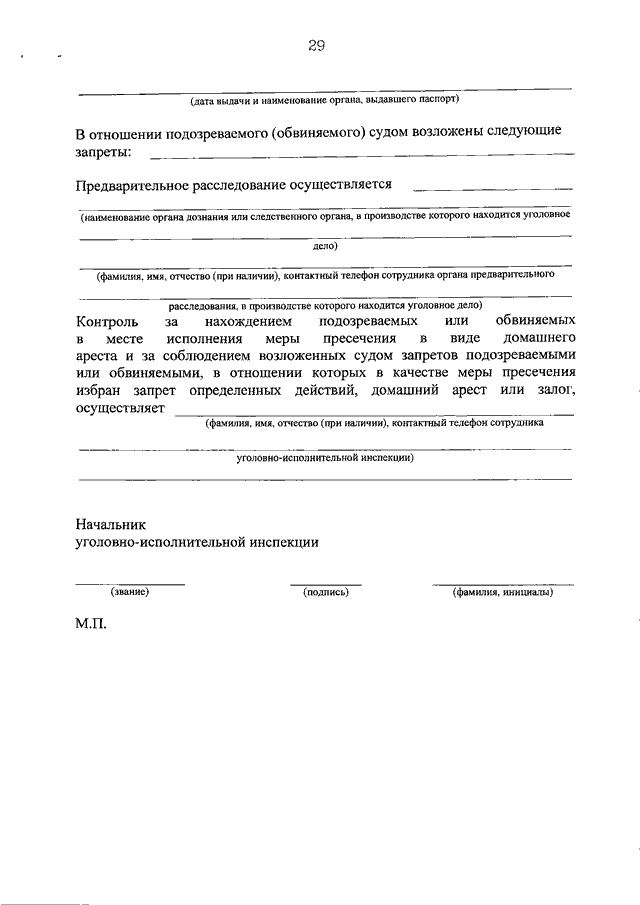 "ОБ УТВЕРЖДЕНИИ ПОРЯДКА ОСУЩЕСТВЛЕНИЯ КОНТРОЛЯ ЗА НАХОЖДЕНИЕМ ПОДОЗРЕВАЕМЫХ ИЛИ ОБВИНЯЕМЫХ В МЕСТЕ ИСПОЛНЕНИЯ МЕРЫ ПРЕСЕЧЕНИЯ В ВИДЕ ДОМАШНЕГО АРЕСТА И ЗА СОБЛЮДЕНИЕМ ВОЗЛОЖЕННЫХ СУДОМ ЗАПРЕТОВ ПОДОЗРЕВАЕМЫМИ ИЛИ ОБВИНЯЕМЫМИ, В ОТНОШЕНИИ КОТОРЫХ В КАЧЕСТВЕ МЕРЫ ПРЕСЕЧЕНИЯ ИЗБРАН ЗАПРЕТ ОПРЕДЕЛЕННЫХ ДЕЙСТВИЙ, ДОМАШНИЙ АРЕСТ ИЛИ ЗАЛОГ"