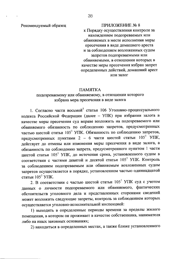 "ОБ УТВЕРЖДЕНИИ ПОРЯДКА ОСУЩЕСТВЛЕНИЯ КОНТРОЛЯ ЗА НАХОЖДЕНИЕМ ПОДОЗРЕВАЕМЫХ ИЛИ ОБВИНЯЕМЫХ В МЕСТЕ ИСПОЛНЕНИЯ МЕРЫ ПРЕСЕЧЕНИЯ В ВИДЕ ДОМАШНЕГО АРЕСТА И ЗА СОБЛЮДЕНИЕМ ВОЗЛОЖЕННЫХ СУДОМ ЗАПРЕТОВ ПОДОЗРЕВАЕМЫМИ ИЛИ ОБВИНЯЕМЫМИ, В ОТНОШЕНИИ КОТОРЫХ В КАЧЕСТВЕ МЕРЫ ПРЕСЕЧЕНИЯ ИЗБРАН ЗАПРЕТ ОПРЕДЕЛЕННЫХ ДЕЙСТВИЙ, ДОМАШНИЙ АРЕСТ ИЛИ ЗАЛОГ"