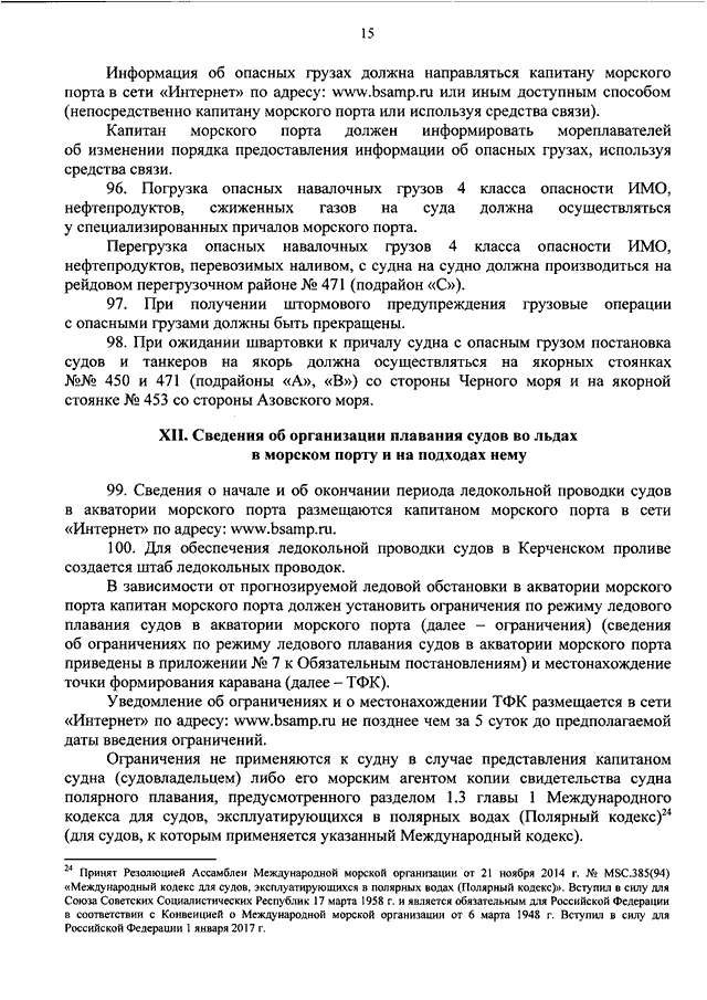 "ОБ УТВЕРЖДЕНИИ ОБЯЗАТЕЛЬНЫХ ПОСТАНОВЛЕНИЙ В МОРСКОМ ПОРТУ КЕРЧЬ"