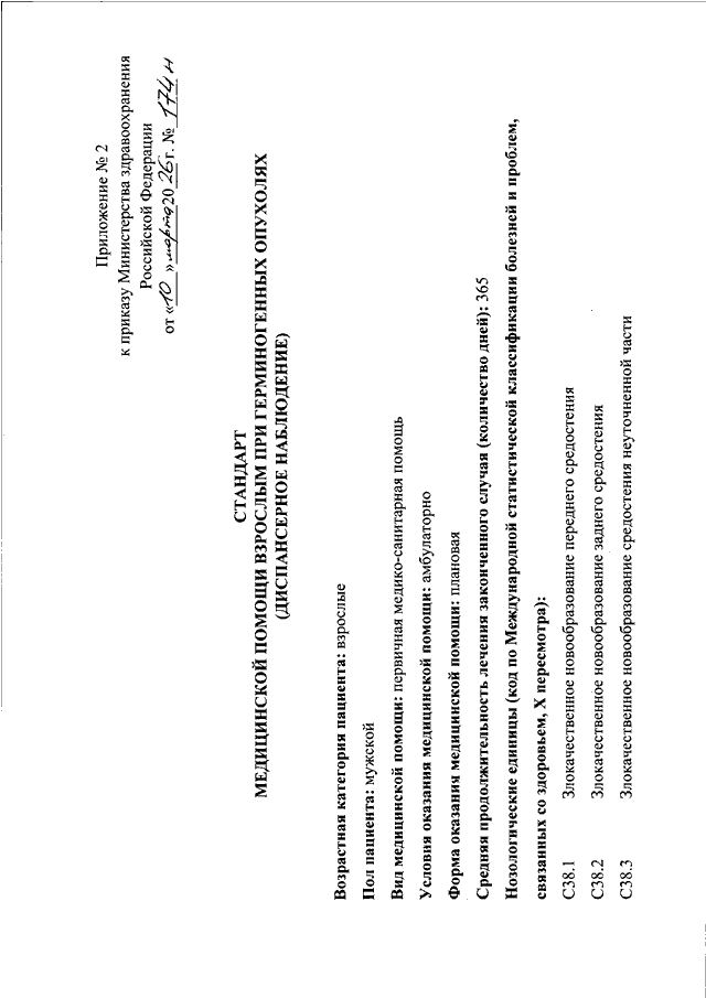 "ОБ УТВЕРЖДЕНИИ СТАНДАРТОВ МЕДИЦИНСКОЙ ПОМОЩИ ВЗРОСЛЫМ ПРИ ГЕРМИНОГЕННЫХ ОПУХОЛЯХ"