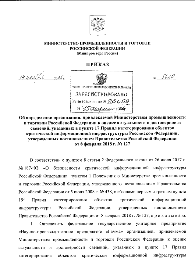 ПРИКАЗ Минпромторга РФ от 14.11.2025 N 5620