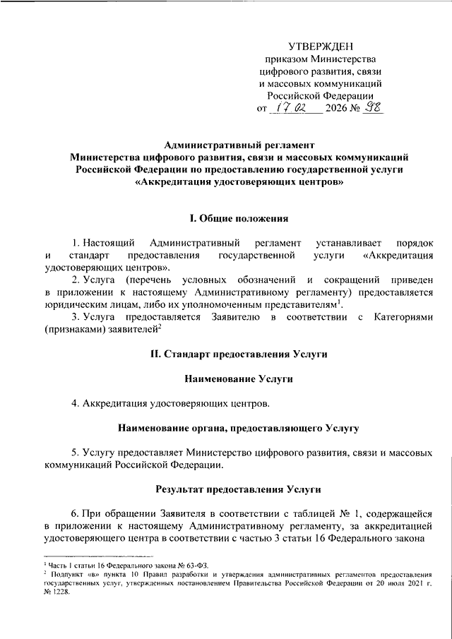 ПРИКАЗ Минцифры России от 17.02.2026 N 98