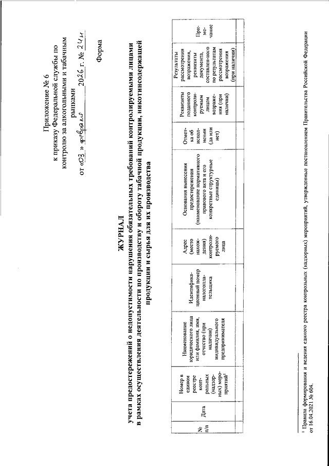 ПРИКАЗ Росалкогольтабакконтроля от 03.02.2026 N 24н